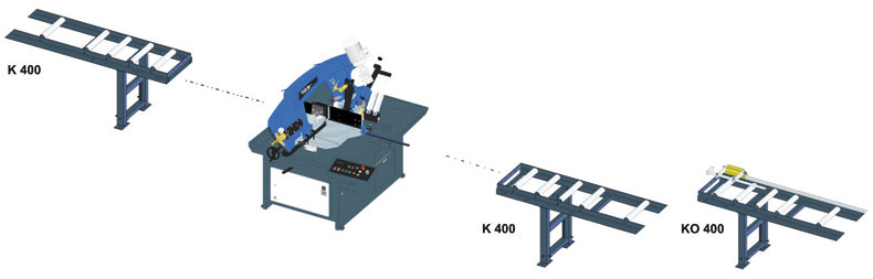 Een halfautomatisch model kan in combinatie met een rollenbaan met opduwsysteem ook omgebouwd worden naar een volautomatische zaagmachine.